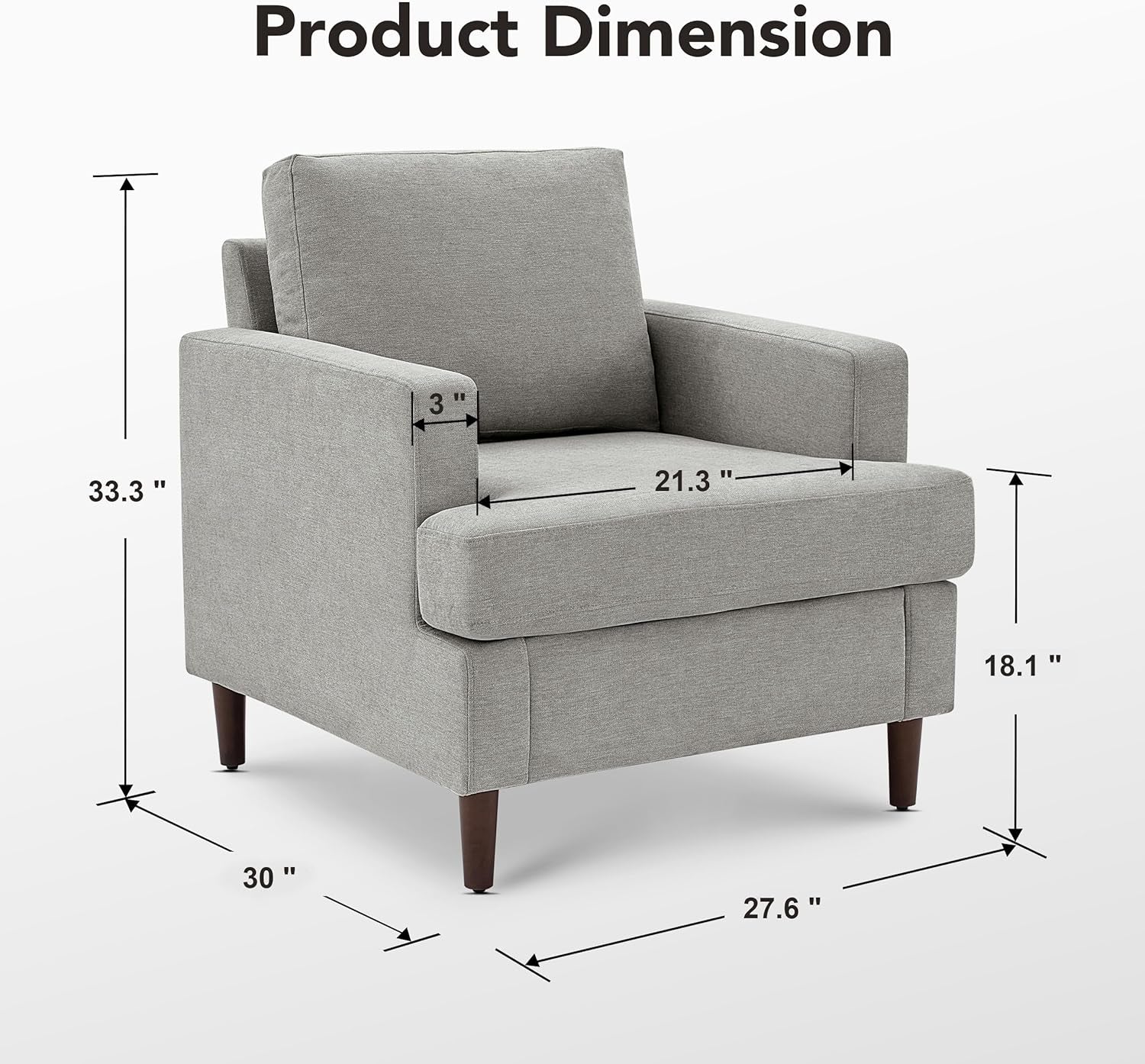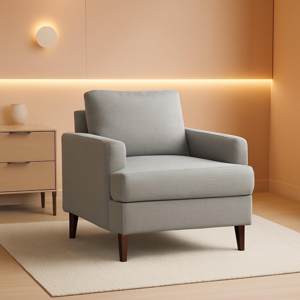 Mid Century Linen Upholstered Accent Armchair Grey